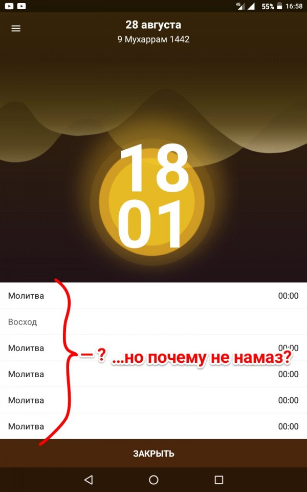 Это системный лейбл для каждого намаза, который по идее не должен показываться пользователю. Он показывается из-за ошибки, причину которой мы ещё не смогли выяснить. Вместо лейбла там должно показываться название намаза, а вместо 00:00 - их время.